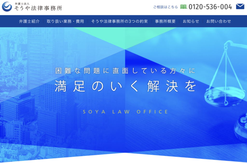 弁護士法人そうや法律事務所は、親身で丁寧な対応が評判の法律事務所です。